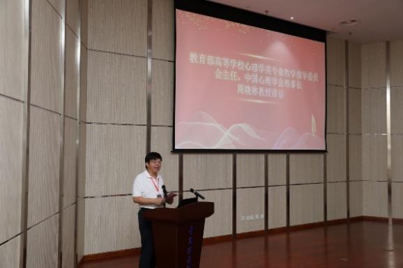 校党委常委、副校长陈涛在大赛开幕式上致欢迎词。教育部高等学校心理学类专业教学指导委员会主任、华东师范大学心理与认知科学学院院长、大赛评审专家委员会主任周晓林教授,山东省科协学会服务中心主任刘利印,大赛评审专家委员会执行主任李寿欣教授,大赛组织委员会主任、山东心理学会理事长高峰强教授分别发表精彩讲话。大赛组织委员会执行主任、山东心理学会秘书长王大伟教授汇报大赛整体情况。beat365在线唯一官网师范学院副院长陶明达主持开幕式。
