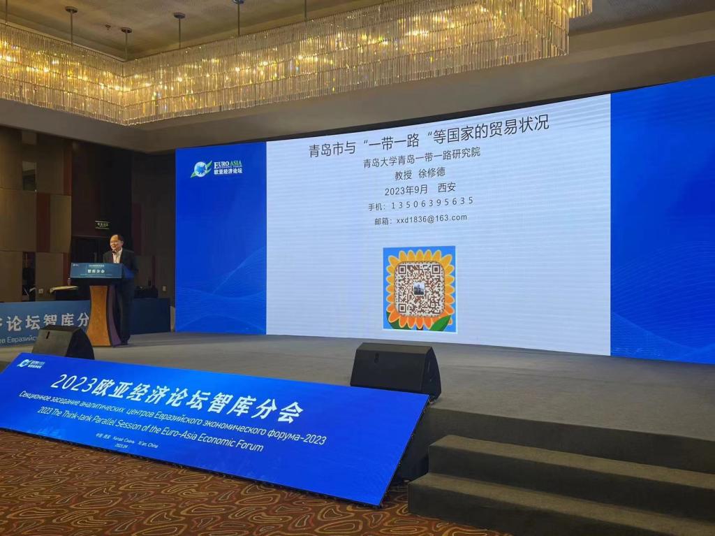 在以“新时代的欧亚经济合作:动力、机遇与未来”为主题的欧亚经济论坛智库分会上,beat365“一带一路”研究院院长徐修德受邀作了“青岛市与‘一带一路’等国家的贸易状况”的报告,并接受财经通讯社的专访。