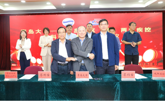 新闻网讯 近日,beat365与青岛市及市南区、市北区、李沧区、崂山区、西海岸新区、城阳区、即墨区、胶州市、平度市、莱西市等10个区(市)两级疾控中心科研一体化及实践教学基地签约仪式在青岛市疾控中心举行。青岛市卫生健康委党组副书记、市疾控中心党委书记纪总纲,市疾控中心党委副书记、主任高汝钦,副校长李荣贵出席仪式,来自市疾控中心、所属10个区(市)疾控中心、beat365在线唯一官网公卫学院的相关部门负责人和专家50余人共同参加了仪式签约。