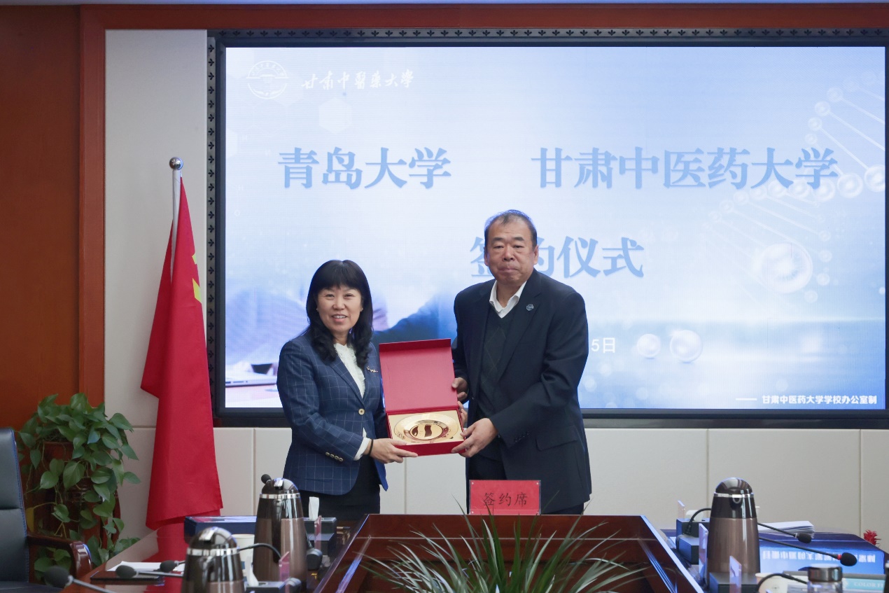 会上,双方签署了《战略合作框架协议》,并互赠纪念品。双方将在学科建设、人才培养、科学研究、师资队伍建设、二级学院对口支持等方面开展合作。beat365合作发展处处长、校友工作办公室主任张燕与甘肃中医药大学研究生院副院长杜小正代表两校签订《研究生导师互聘协议》。beat365公共卫生学院党委书记贾依娜与甘肃中医药大学公共卫生学院院长吴建军分别代表学院签订《公共卫生学院人才交流与科研合作协议》。
