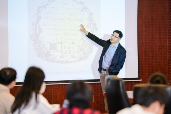 在专家讲座环节,论坛邀请了华中师范大学特聘教授,澳门科技大学教授宫宏宇做特邀报告讲座。宫宏宇在《自东徂西——经由海上丝绸之路传至欧美的中国音乐》报告中,从“柳叶锦、耶稣会士与中国乐曲最初之西渐”“马戛尔尼使团与《茉莉花》之西传及流变”“八音盒、欧洲歌剧舞台上的中国”三个方面出发,细致入微地讲述了中国音乐是如何在海上丝绸之路这条古老的航线上传入异国他乡,并与当地音乐相互吸纳融合,从而形成了新的音乐艺术形式。此次报告论述了中国音乐在欧美地区交流传播的悠久历史,展现了音乐在海上丝绸之路的运行之上被赋予的丰厚底蕴,阐释了海上丝绸之路构建世界交通线路大网络,形成东西方文化交流重要纽带,推动文化交流与发展的深刻意义。