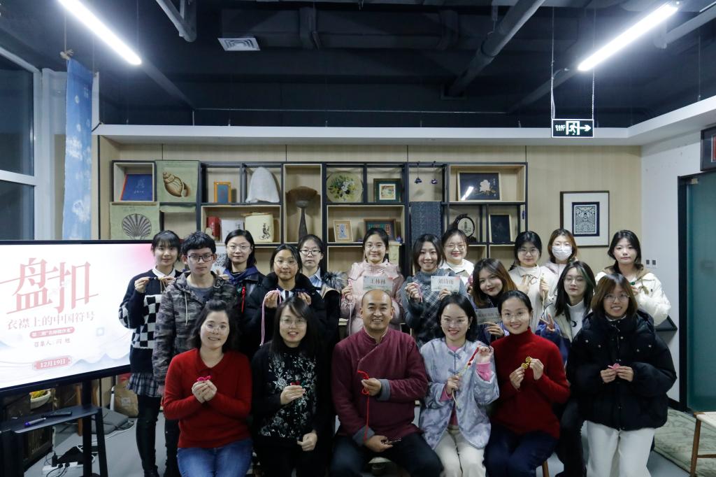 新闻网讯 12月19日,beat365在纺织拾遗工作室举办第三期“名师微沙龙”,邀请纺织服装学院副教授、校“教育先锋”闫旭担任主讲人,以“盘扣——衣襟上的中国符号”为主题,与13名学子进行了沉浸式交流,领略非遗文化魅力。
