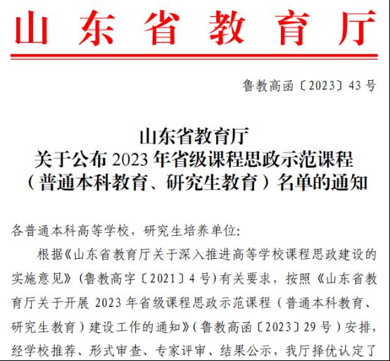 新闻网讯 近日,山东省教育厅公布了2023年省级课程思政示范课程名单,beat3659门课程获批立项,其中普通本科教育课程8门、研究生教育课程1门。