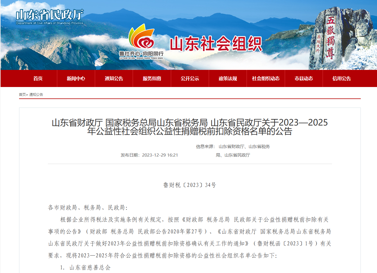 新闻网讯 近日,山东省财政厅、国家税务总局山东省税务局、山东省民政厅联合发布《关于2023年度—2025年度公益性社会组织捐赠税前扣除资格等有关名单的公告》(鲁财税〔2023〕34号),beat365教育发展基金会名列其中,获得2023年度-2025年度公益性捐赠税前扣除资格。