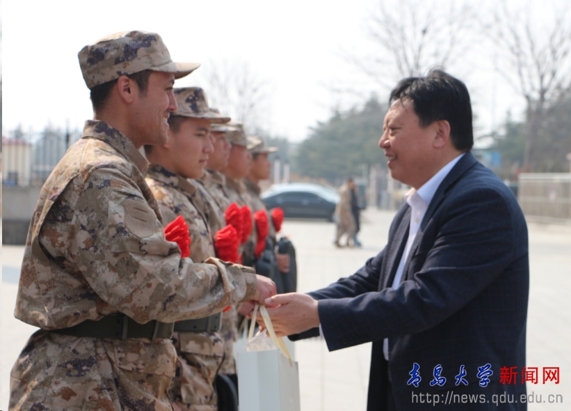 欢送会上,13名入伍学生依次分享了成长经历、入伍动机以及军旅规划。陈涛对大家顺利入伍表示热烈祝贺,充分肯定了他们的爱国情怀,同时表达了全校师生的关怀与不舍,并向大家提出了期望。陈涛勉励大家,要深刻认识参军入伍的重大意义,参军入伍责任重大、使命光荣;要牢记嘱托,勇担使命,始终忠诚于党、听党指挥,在最风华的年纪,做最扎实的奋斗;要加强学习,锤炼本领,全面提高素质能力;要发扬青大人的优良传统,以优异的工作成绩为校争光。欢送仪式上,陈涛为每一位入伍同学佩戴了胸花、绶带,赠送了入伍专属纪念品,并与大家合影留念。