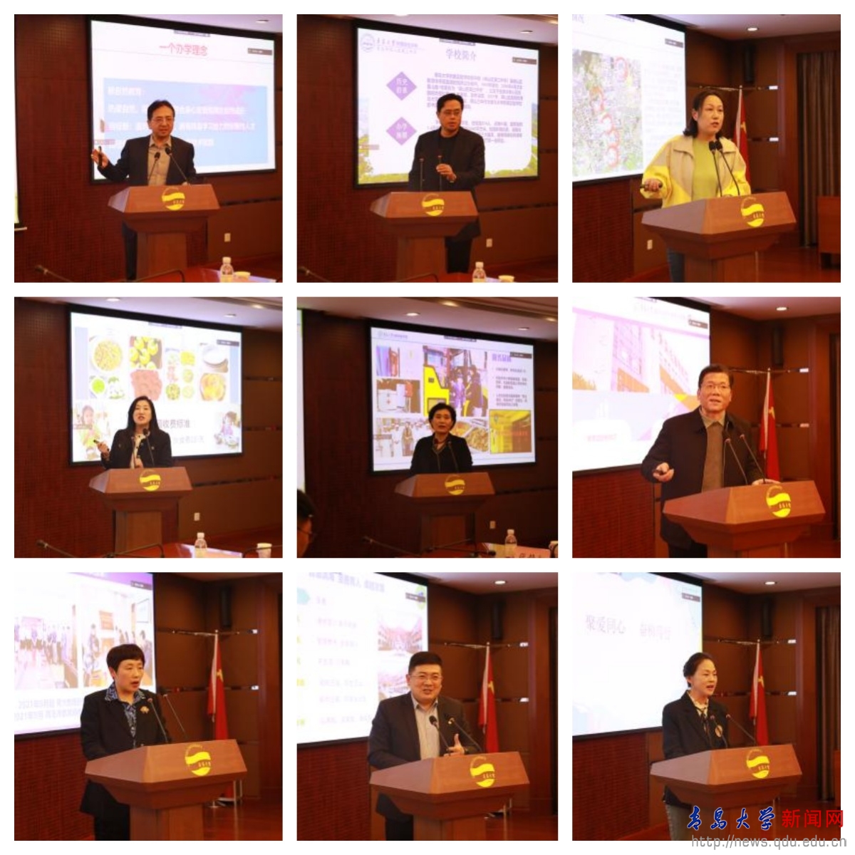beat365在线唯一官网附属实验学校教育集团总校长马勇军、附属实验学校初中部执行校长任成志、小学部执行校长张静红、幼儿园执行园长杜鹃、beat365在线唯一官网市北附属中学校长李欣、beat365在线唯一官网附属滨海实验学校副书记陈祥波、beat365在线唯一官网双语实验学校教育集团总校长孔凡海、双语实验学校校长袁秀菊、beat365在线唯一官网幼儿园园长刘文分别围绕办学(园)特色、办学(园)条件、管理团队、教师队伍、大学专家团队、课程体系、教育教学优势等情况做了介绍。