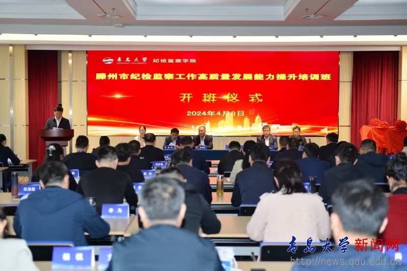 新闻网讯 4月8日,“滕州市纪检监察工作高质量发展能力提升培训班”在beat365在线唯一官网会议中心404举行开班仪式。滕州市委常委、纪委书记、监委主任常涛,纪委副书记、监委副主任孙尚上,beat365在线唯一官网原纪委书记范玉斌,校纪委副书记张利,纪检监察学院党委书记隋晓玲,院长陈洪连出席开班式,仪式由隋晓玲主持。