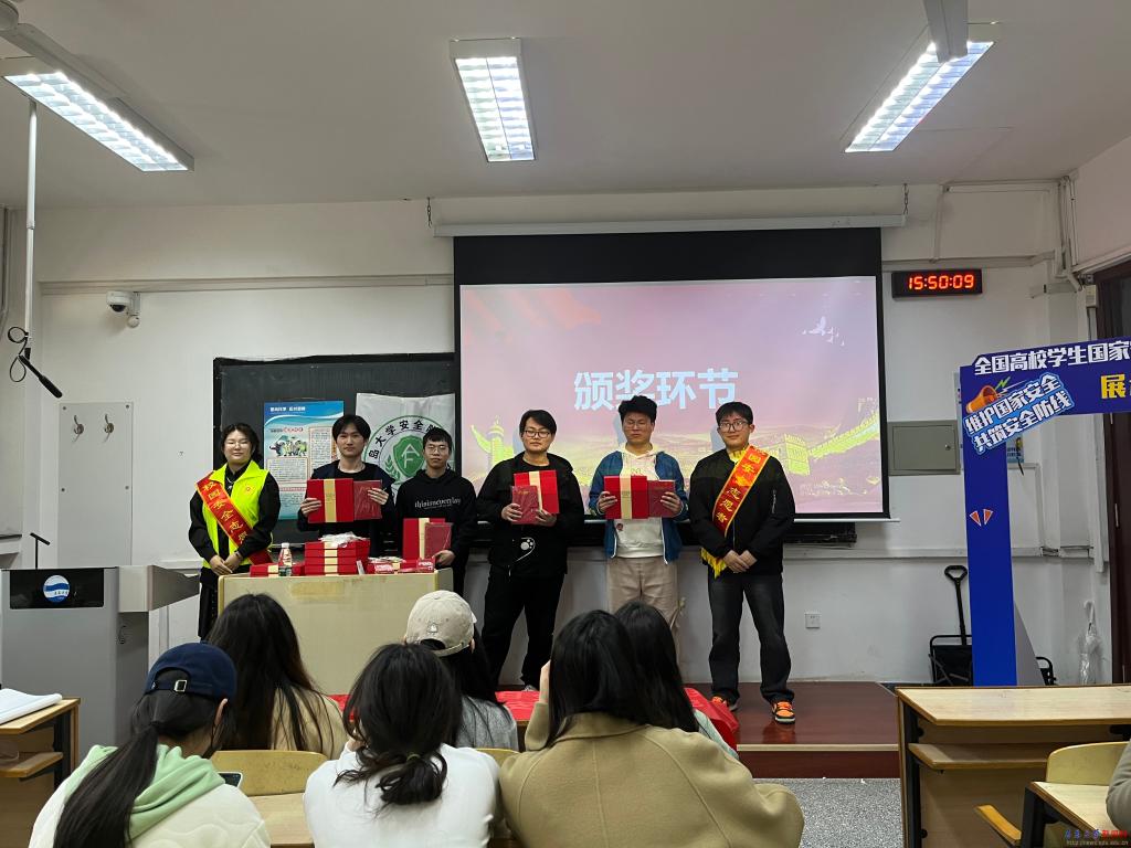 在“国家安全知多少”主题知识问答环节时,同学们踊跃答题,通过横幅签名的方式写下了“有国才有家,国家安全靠大家”的庄严承诺。活动组织单位向有奖问答活动中表现突出的安全员颁发了奖品,向安全员们发放了反邪教宣传挂图、国家安全宣传资料。