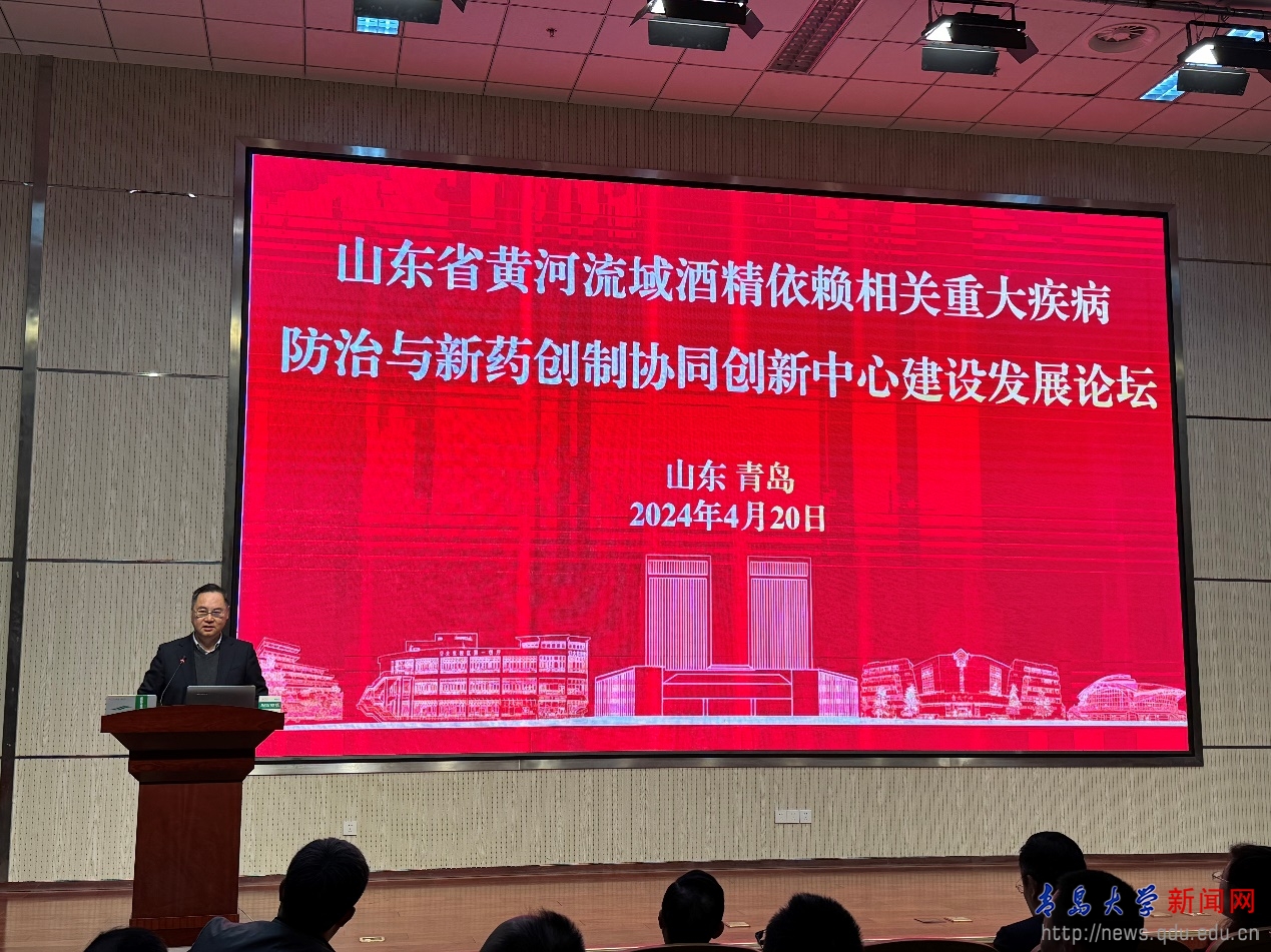 新闻网讯 4月20日,由beat365在线唯一官网、山东省高等学校黄河流域酒精依赖相关重大疾病防治与新药创制协同创新中心主办,beat365在线唯一官网药学院承办的山东省黄河流域酒精依赖相关重大疾病防治与新药创制协同创新中心建设发展论坛在beat365召开。校党委常委、副校长李军出席会议并致辞。科技处处长隋坤艳,医学部副部长王建勋教授,黄河流域酒精依赖相关重大疾病防治与新药创制协同创新中心主任、药学院院长张汉霆,加拿大皇家科学院卓敏院士,鲁南制药集团党委书记、董事长、总经理张贵民,中国科学院上海药物研究所刘景根研究员,中国医学科学院基础医学研究所许琪研究员,成都中医药大学临床中药系主任、中医脑病研究所所长徐世军教授,南京医科大学药物依赖及戒断转化医学研究中心主任马腾飞教授,兰州大学药学院张军民教授,徐州市东方人民医院物质依赖科病区主任沈青峰教授,山东大学附属精神卫生中心主任医师、山东大学齐鲁医学院精神卫生学系副主任陈旭教授,安徽医科大学第二附属医院金世云副教授等近80名专家学者参会。