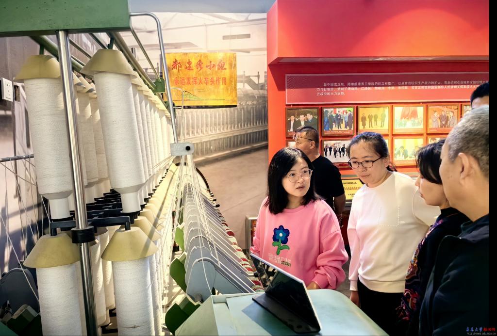 在青岛市纺织博物馆,党员们实地学习了纺织文化和劳模郝建秀精神。在历史馆展厅,详细了解了青岛纺织这一母亲工业的百年发展历程,包括民族纺织业的兴起、纺织业对青岛城市建设的支柱作用以及纺织产业转型升级发展等。在郝建秀文化馆展厅,集中学习了“郝建秀工作法”以及“郝建秀小组”勇挑重担、拼搏创新、乐于奉献、争创一流的“火车头”精神。