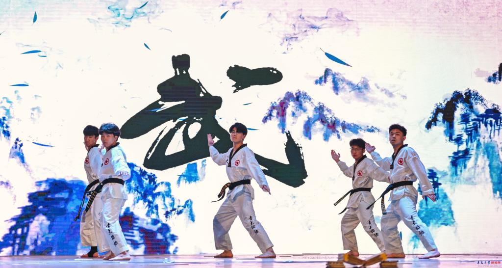 展演共分三个篇章,雅乐社团一首《鹿鸣》跨越时光长河,将我们带入到王谢堂前,国际教育学院和国际交流协会的留学生们奉献了一场充满异国情调和浓郁民俗风情的火箭节舞蹈《花样年华》,青年志愿者协会的歌曲串烧《青春乐章》、外语学院艺术团的《身骑白马》、社团管理部的《197653》,用歌声描摹着青春的模样,跆拳道协会的《入道》、师范学院和源泉剧社合作的《燃烛》、红帆船艺术团和青澜舞蹈团呈现的舞蹈《青春灼灼》、《茶韵》,将展演气氛不断推向高潮,随着大学生艺术团带来的歌伴舞《向光而行》表演结束,闭幕展演完美谢幕。