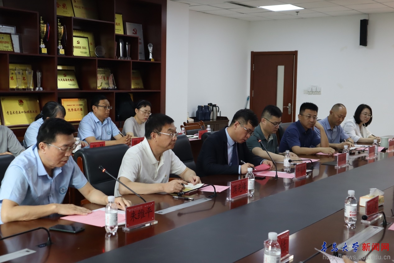 朱维平介绍了beat365在线唯一官网附属青岛市海慈医院的基本情况,并就医院的总体概况、学科建设、师资力量、主要举措和取得成果展开说明。