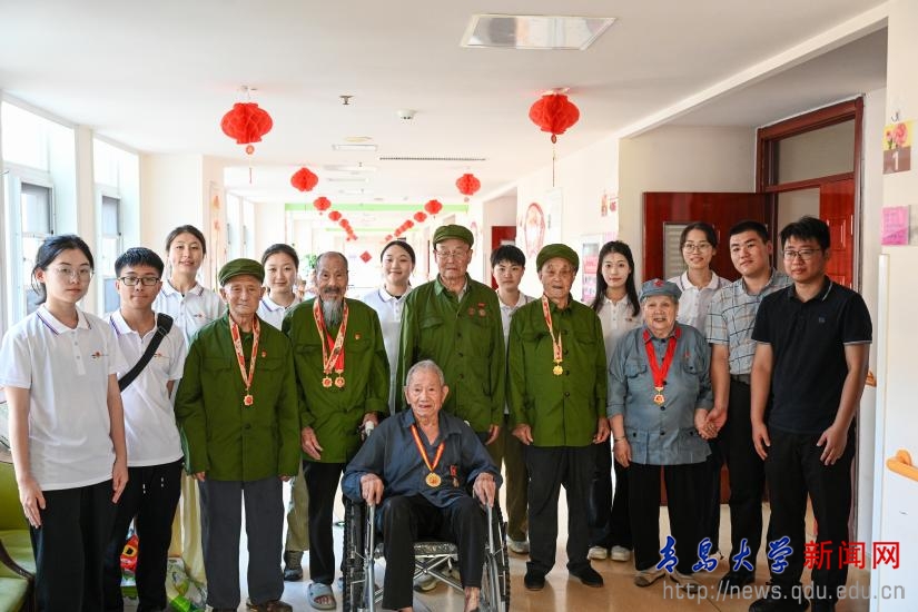 座谈会后,实践团师生前往天河医院养老服务中心功臣楼,与现存的老兵、红嫂交谈,聆听他们讲述战斗经历、支前故事,并送上建军节慰问品,表达对老兵的关怀祝福,激发师生传承红色基因、积极投身国防教育事业的使命感和自豪感。