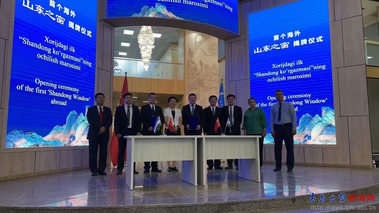 会上,王随莲与纳西莫夫·迪尔穆罗德副校长共同为首个海外“山东之窗”揭牌。肖江南与纳西莫夫·迪尔穆罗德共同签署合作协议。