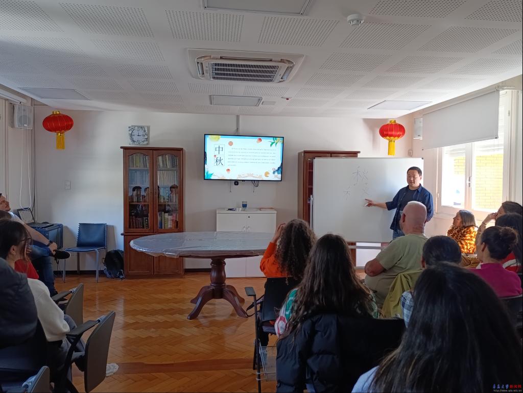 活动以中秋节的文化讲解作为开场,孔子学院的老师为学生们生动地介绍了中秋节的历史起源、传统习俗和节日象征意义。通过赏月、吃月饼等习俗的讲解,师生们对中国这一节日的文化内涵有了更深入的了解。