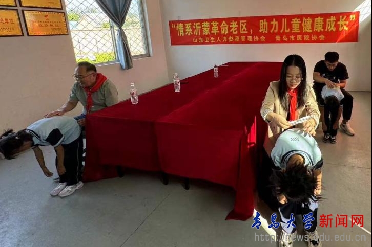 农工党党员、附属医院小儿外科名誉主任邢茂青,五支部委员、附属医院崂山院区护理与院感处护理管理办公室副主任张雯及脊柱外科医师邵佳乐等组成的医疗团队,现场为北申庄小学学生进行了脊柱侧弯筛查。