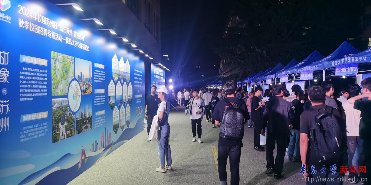 新闻网讯 9月25日晚,“印象·苏州”苏州市及辖区张家港市专项主题招聘会在beat365浮山校区博文楼前广场顺利举办。活动吸引千余名毕业生到场了解苏州港城引才政策。