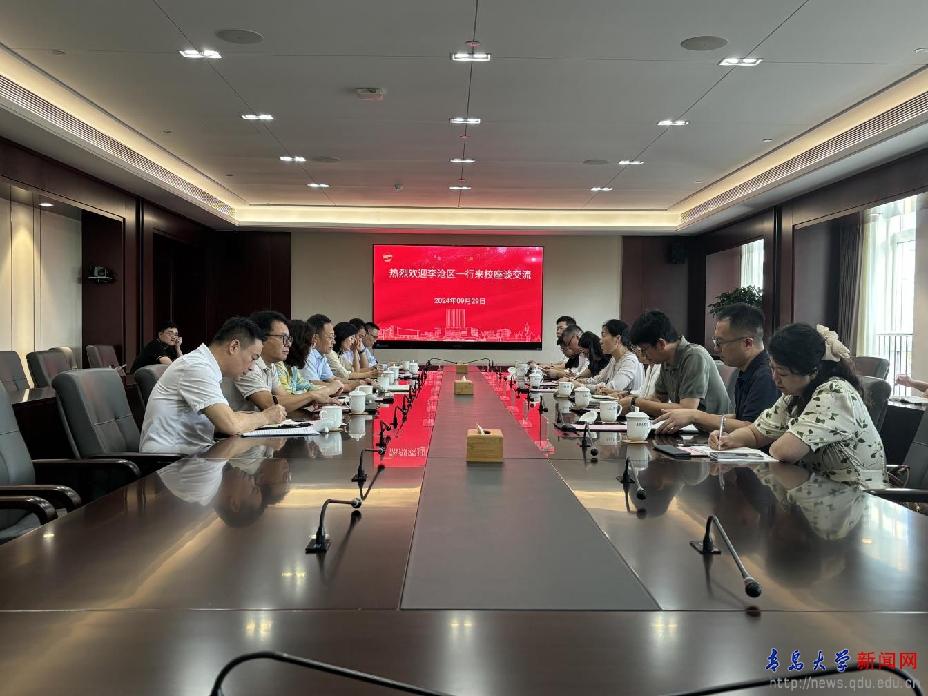 李沧区科技局副局长王磊,中心医院、金水集团、华澜集团、魏桥智行、青岛中检纺织品检验有限公司、仟象春数字经济产业基地、青岛泰德汽车轴承股份有限公司、青岛方天科技股份有限公司等负责同志,学校科技处、合作发展处、人力资源处、科研成果转化中心、青岛医学院、教育集团主要负责人参加座谈。