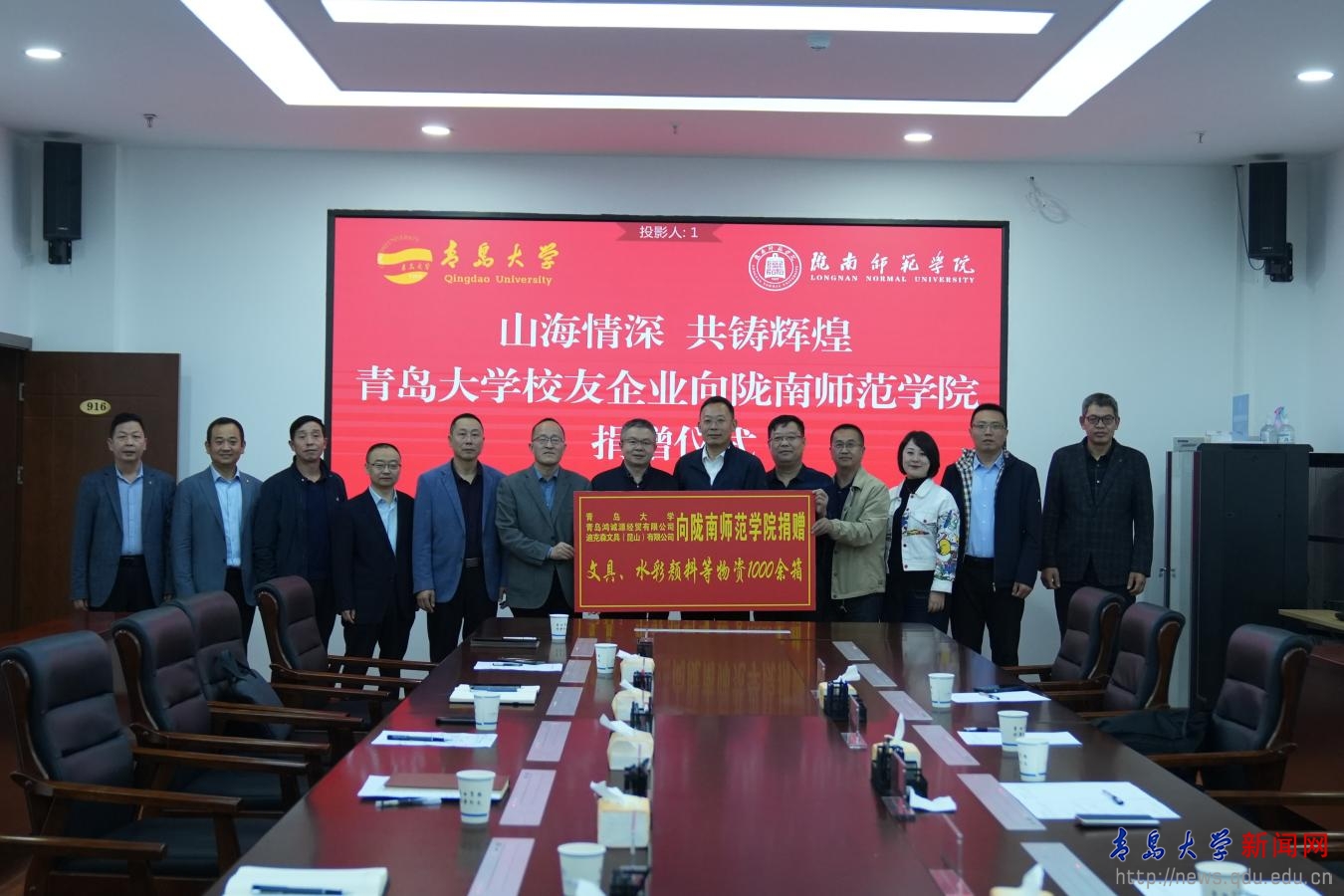 陇南师范学院组织部、人事处、教务处、科研外事处、财务处、学生处、招生就业处、国有资产管理处、学前教育学院、美术与设计学院等单位有关负责人,青岛科大华鲁科技有限公司、青岛华联建筑科技集团有限公司、青岛地铁商贸有限公司、青岛鸿诚源经贸有限公司等校友企业代表,beat365合作发展处、校友工作办公室、校教育发展基金会有关负责人参加捐赠仪式。