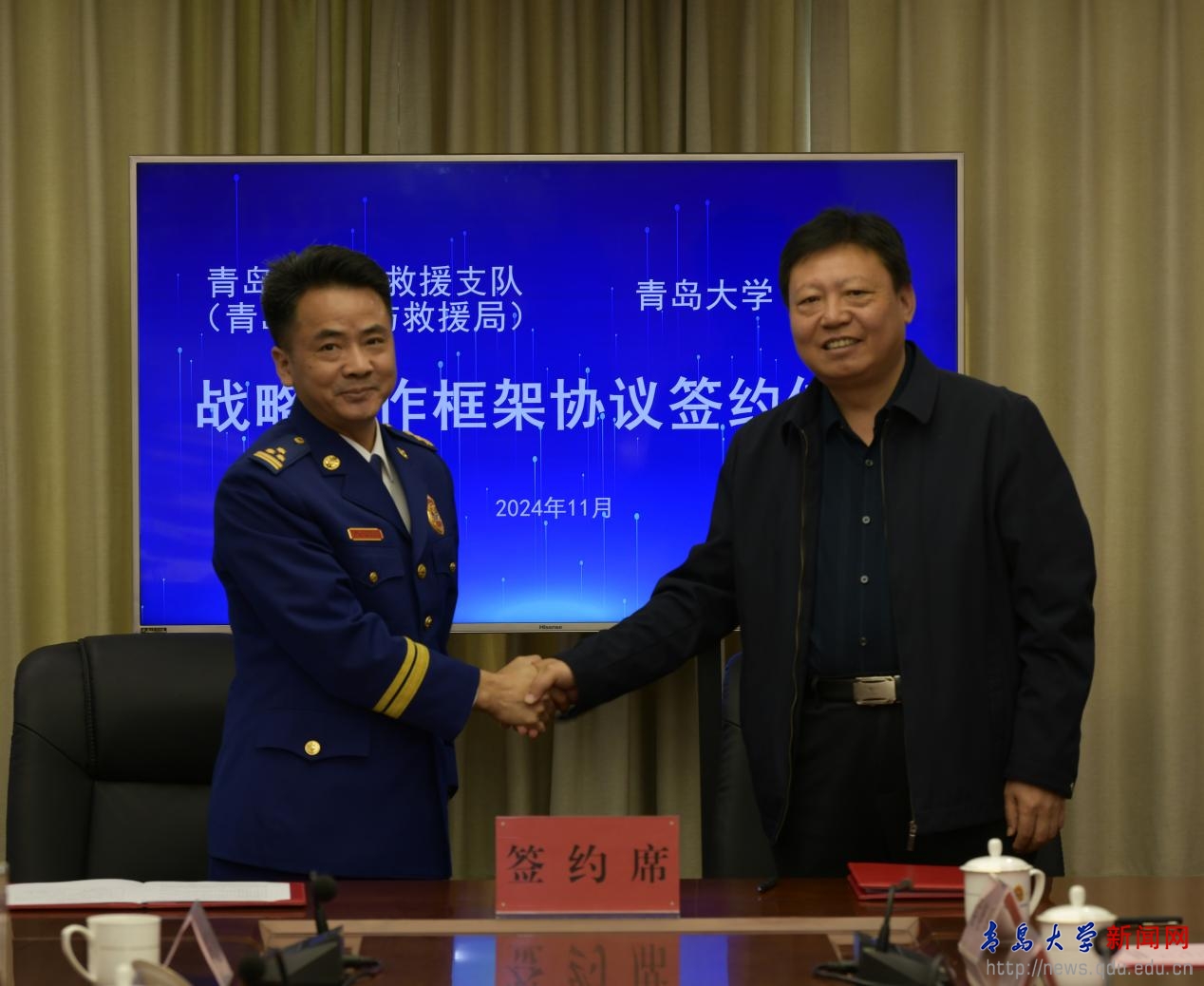 此次战略合作紧贴实际、注重实效,本着“资源共享、优势互补、互惠共赢”的原则,聚焦加快推进消防治理体系和治理能力现代化,充分发挥学校资源优势,深化拓宽合作领域,细化丰富合作内容,建立广泛紧密联系的合作平台,共建高端消防安全管理和灭火救援人才智库,促进消防安全管理研究、消防救援人才培养、火灾预防及灭火救援决策咨询、学校消防安全管理服务指导等多方面深度合作,为实现学校高质量发展和高水平安全良性互动、奋力推进中国式现代化青岛实践贡献智慧和力量。