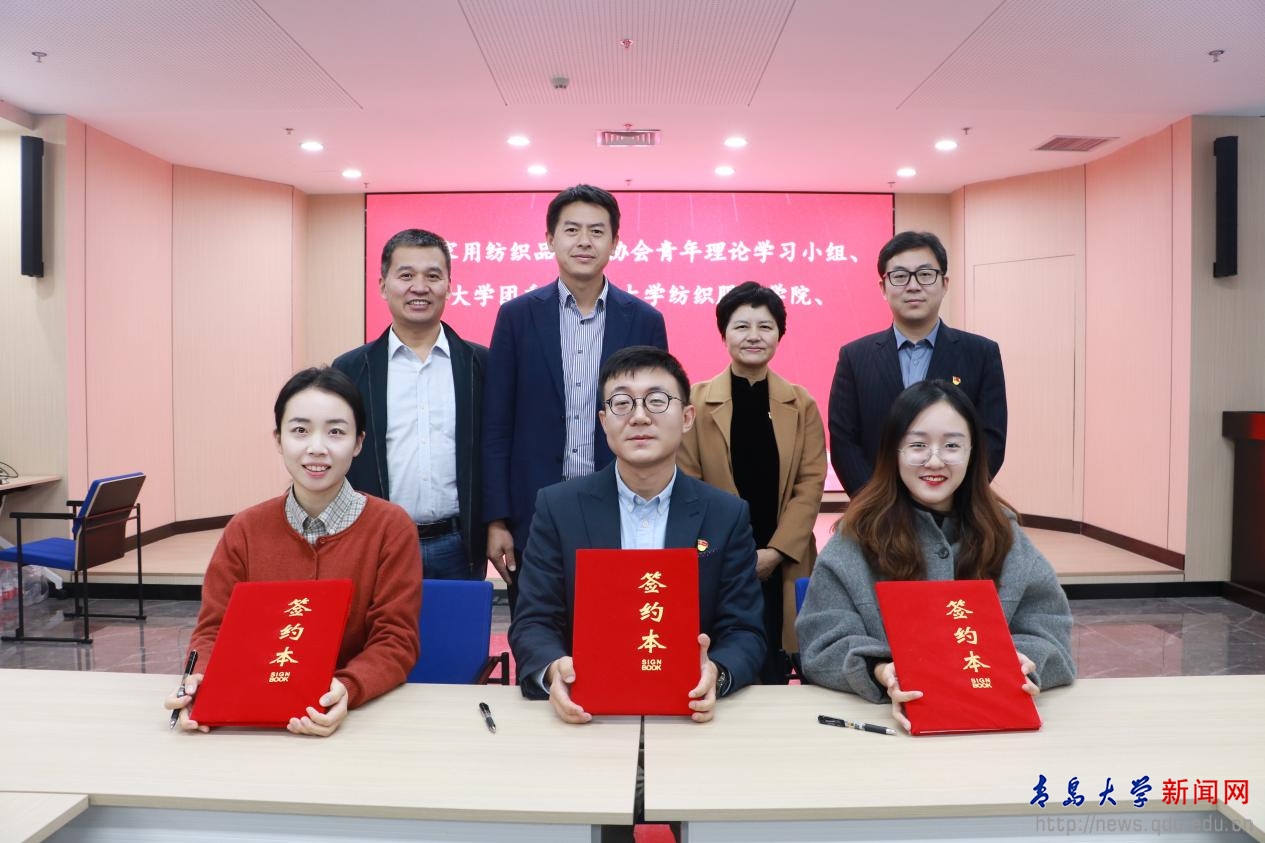 随后,中国家用纺织品行业协会与团委和纺织服装学院进行联学联建签约。
