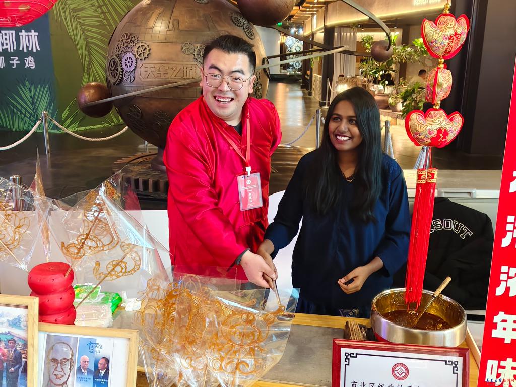 此外,beat365留学生还参加了青岛市2025年“非物质文化遗产月”系列活动启动仪式,在欢乐祥和的氛围中,观看了胶州秧歌、马头琴、古彩戏法等非遗传统艺术项目带来精彩展演,并在“非遗美食区”“非遗文创区”和“非遗体验区”三大非遗市集展区,感受了螺钿、瓷器、锔艺等非遗精品,高家糖球、王哥庄大馒头、郑庄脂渣等非遗美食和拓印、剪纸等非遗体验项目。