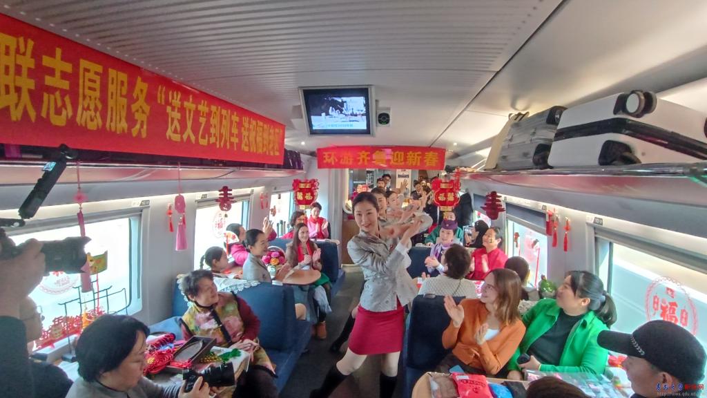 列车工作人员动感的歌舞表演,以及青岛市文联的文艺志愿者精心编排的古彩戏法、山东快书、百变魔术等民俗表演也轮番上演,精湛的演出赢得旅客们阵阵掌声。来自德国的留学生寒星明说“很高兴能参加这次体验活动,学习了许多中国传统文化和中国特色,以后可以给我们的家人和朋友们看中国的文化。”活动被中央电视台中文国际频道和新华社等国内媒体宣传报道。