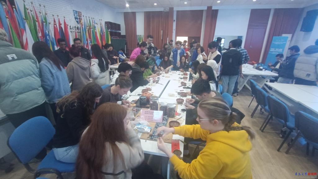 本次活动通过非遗宣传、文旅推介、动手参与、交流互动,邀请了九段烘焙、绒花、孙氏沉香、鲁派内画、书法等非遗传承人来校进行非遗展示,让留学生近距离体验优秀传统文化,感受非遗文化魅力。