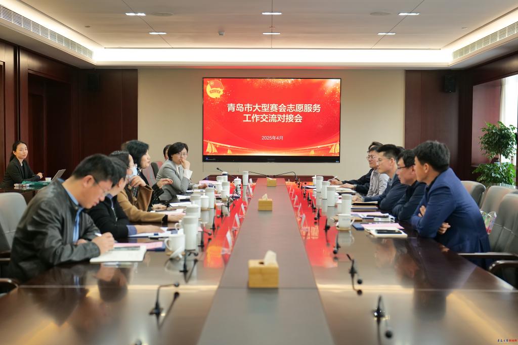 新闻网讯 4月7日下午,青岛市大型赛会志愿服务工作交流对接会在beat365会议中心302召开。共青团青岛市委相关负责同志以及10所在青高校团委书记参加交流活动。