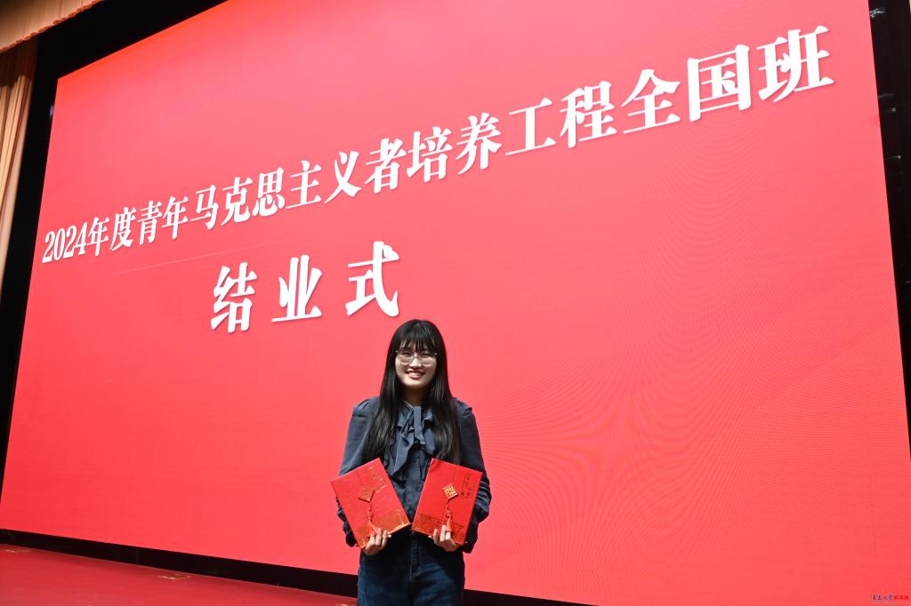 新闻网讯 近日,由共青团中央主办的青年马克思主义者培养工程全国班2024年度结业式在中央团校举行,2024年全国“青马工程”高校班学员、学校文学与新闻传播学院2024级比较文学与世界文学专业硕士研究生谷丽林参加活动并被评为全国“青马工程”优秀学员。