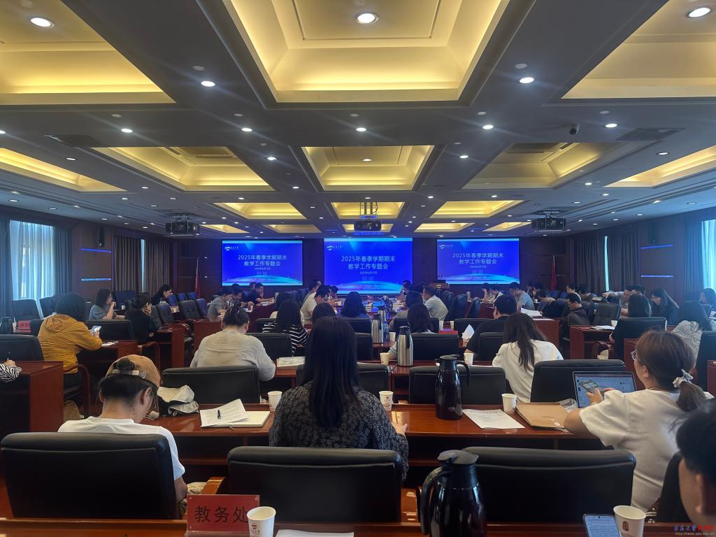 新闻网讯 6月19日下午,学校在浮山校区第一会议室召开2025年春季学期期末本科教学工作会议,校党委常委、副校长李建波主持会议。
