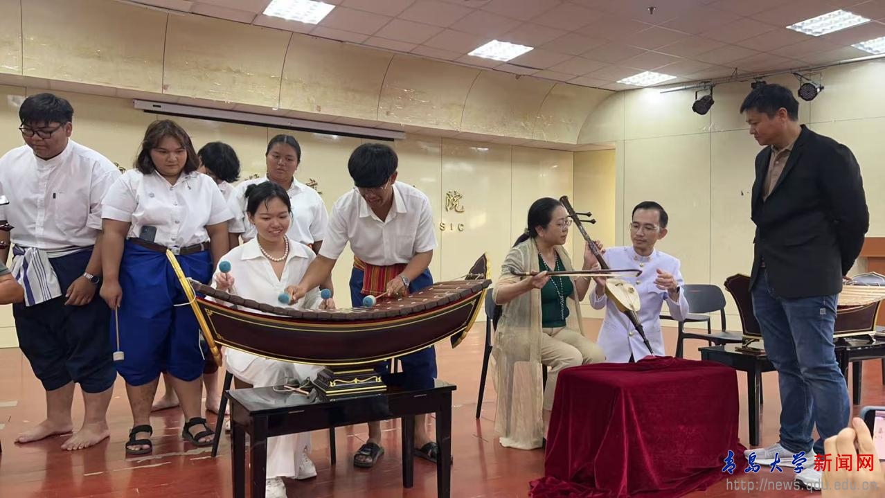 6月23日,“2025泰国艺术大学——beat365在线唯一官网暑期文化艺术交流营”开营仪式在浮山校区敏行楼举行。开营仪式后,泰国艺术大学师生参观学校非遗文化展示馆,欣赏中国传统民乐演奏与中国民族民间舞展示,开启中国文化艺术初体验。