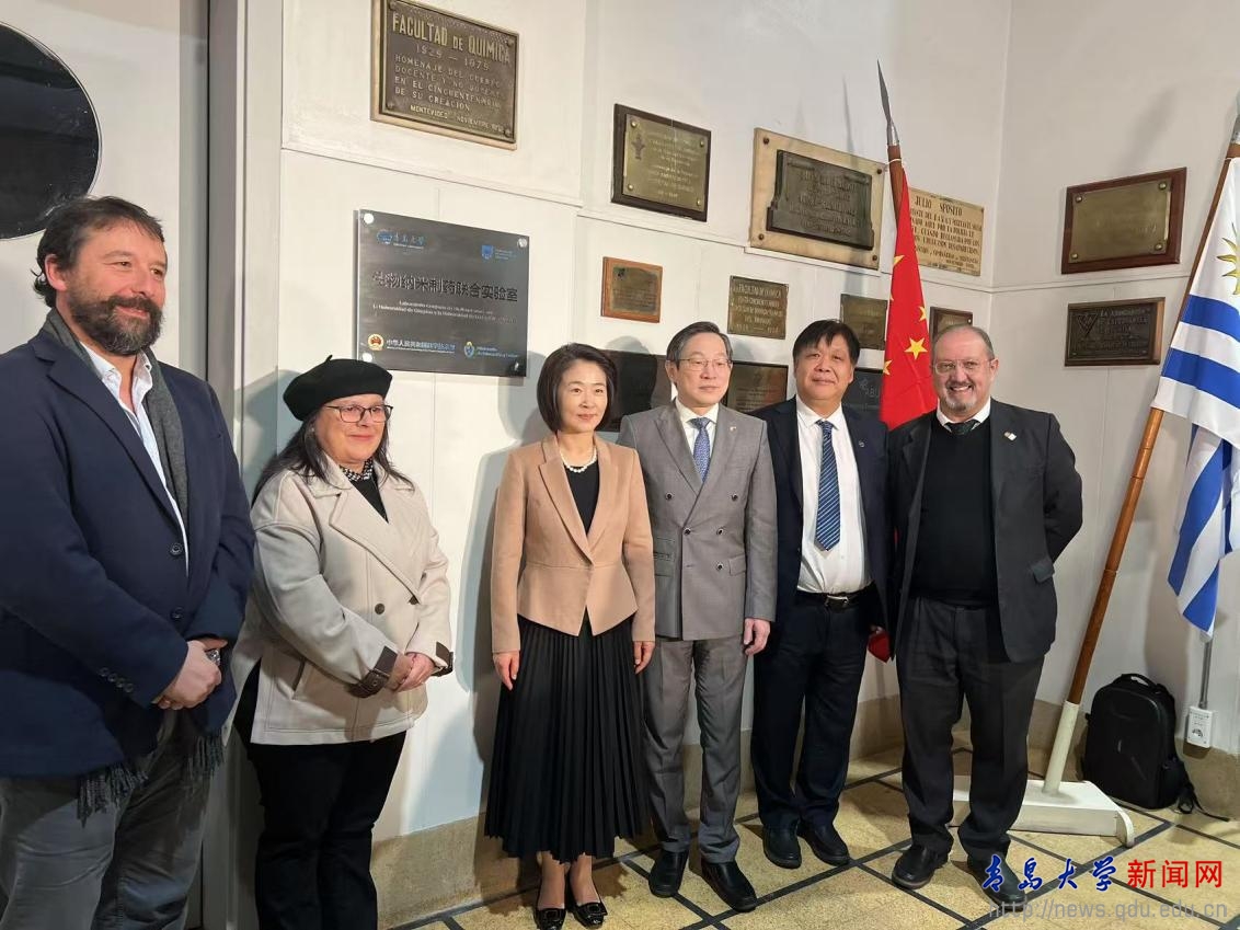 在beat365与乌拉圭共和国大学共建的中国-乌拉圭生物纳米制药联合实验室启动仪式上,中国科技部副部长林新、乌拉圭教育和文化部副部长加芙列拉·贝尔德、中国驻乌拉圭大使黄亚中、乌拉圭共和国大学代理校长蒙布鲁、beat365副校长李荣贵等共同为实验室揭牌。