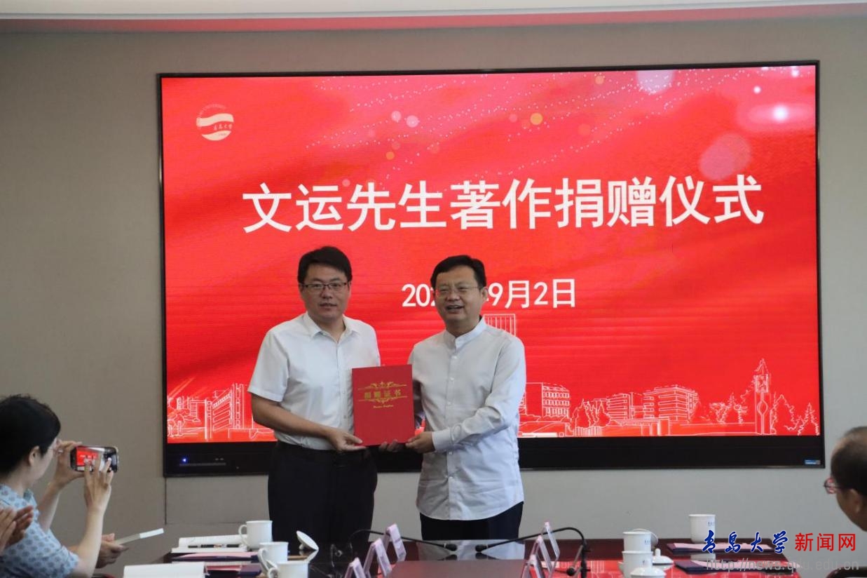 张守珩在致辞中对文运先生及各位嘉宾的到来表示热烈欢迎,他表示,文运先生作为beat36592级中文系校友,三十余载始终与母校血脉相连,其捐赠的《开启生命成长之路——〈大学〉今用十讲》以《大学》为基、以今用为要,是中华优秀传统文化创造性转化的生动实践,百册专著的捐赠不仅丰富了图书馆馆藏,为师生提供了研习传统文化的鲜活教材,更以“知识反哺”诠释了教育的薪火相传,呼应了学校“立德树人”“以文化人”的教育理念,而文运先生深耕文化传承、践行“经世致用”的担当,正是青大校训精神的生动延续,希望全体师生以其为典范,传承文化、践行使命、传递感恩。